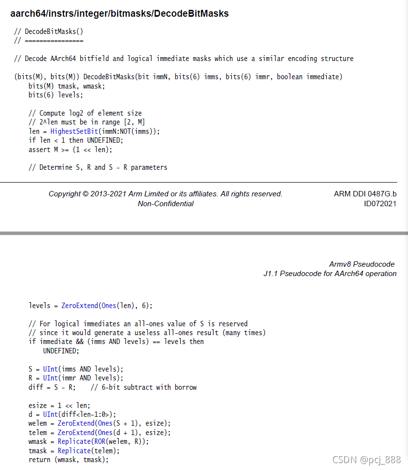 AND指令的伪码不是很直观,详细解释参考老外的这篇文章,非常清楚(参考Logical Immediates小节)