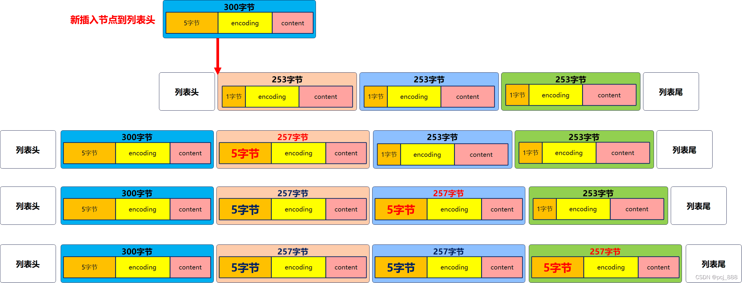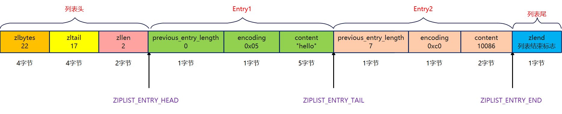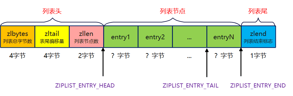 typedefstructzlentry { unsignedint prevrawlensize; /* Bytes used to encode the previous entry len*/ unsignedint prevrawlen; /* Previous entry len. */ unsignedint lensize; /* Bytes used to encode this entry type/len. For example strings have a 1, 2 or 5 bytes header. Integers always use a single byte.*/ unsignedint len; /* Bytes used to represent the actual entry. For strings this is just the string length while for integers it is 1, 2, 3, 4, 8 or 0 (for 4 bit immediate) depending on the number range. */ unsignedint headersize; /* prevrawlensize + lensize. */ unsignedchar encoding; /* Set to ZIP_STR_* or ZIP_INT_* depending on the entry encoding. However for 4 bits immediate integers this can assume a range of values and must be range-checked. */ unsignedchar *p; /* Pointer to the very start of the entry, that is, this points to prev-entry-len field. */ } zlentry;