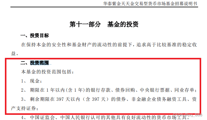以华泰天金ETF为例,可以从华泰官网上找到基金招募说明书。查看“基金的投资”部分,可以看出这是货币基金。