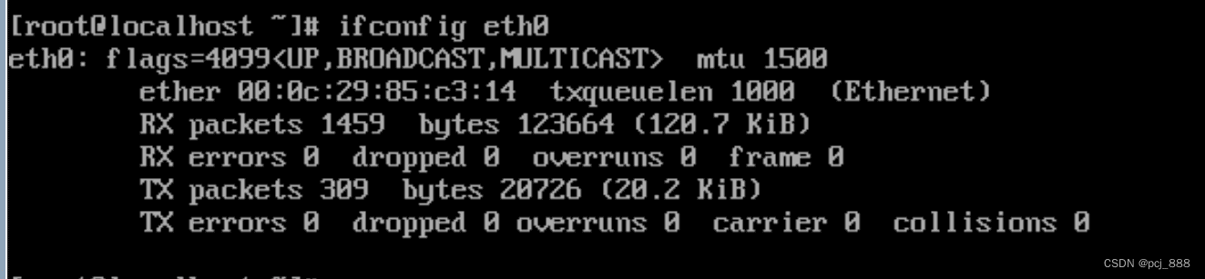 route发现路由表为空,敲ifconfig发现主网卡没有配置IP地址。![]()