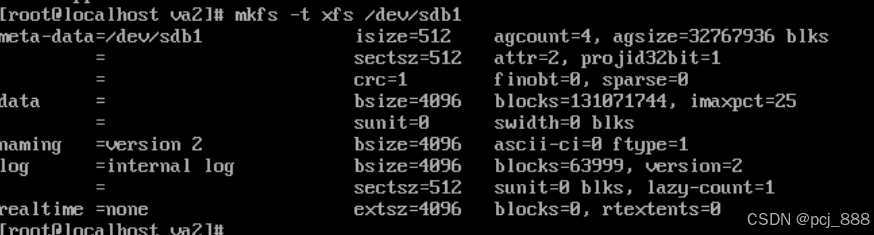 再使用mkfs -t xfs /dev/sdb1命令格式化新分区。(如果你的分区是ext4格式,就用mkfs -t ext4 /dev/sdb1)