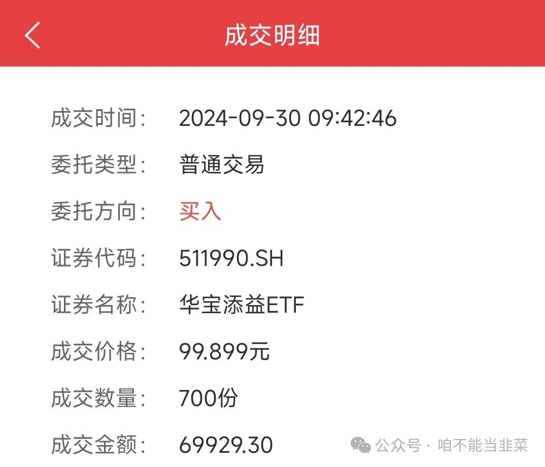 9月30号当天A股疯涨,一些资金卖出华宝添益去追涨股票,导致华宝添益以99.920的价格低开,当天最低价居然只有99.72