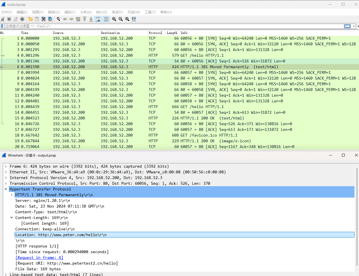 再用curl测试,返回301永久重定向, Location为http://www.peter.com