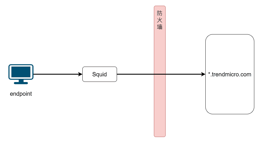 客户端通过Squid代理直接访问目标服务器www.trendmicro.com