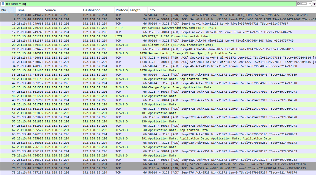 可以看到这一段的请求数据已经被加密, 防火墙只能看到Stunnel服务器的FQDN, 无法识别真正的目标服务器