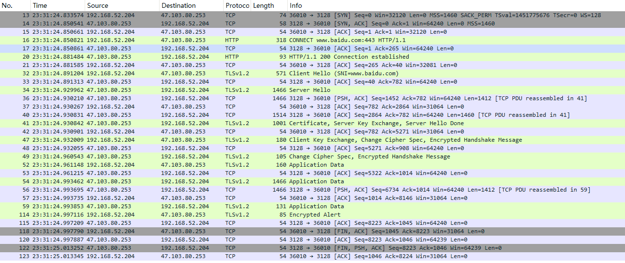 Squid代理到目标服务器之间的报文