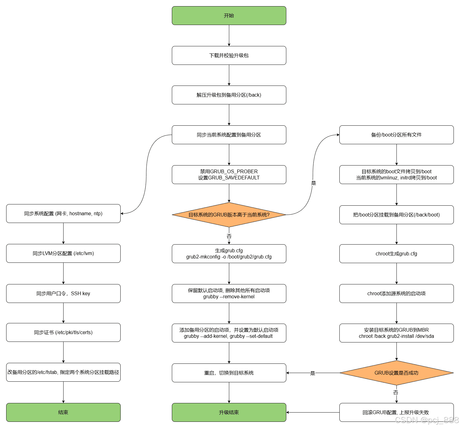 - 如果GRUB配置失败,回滚到升级前的状态。
