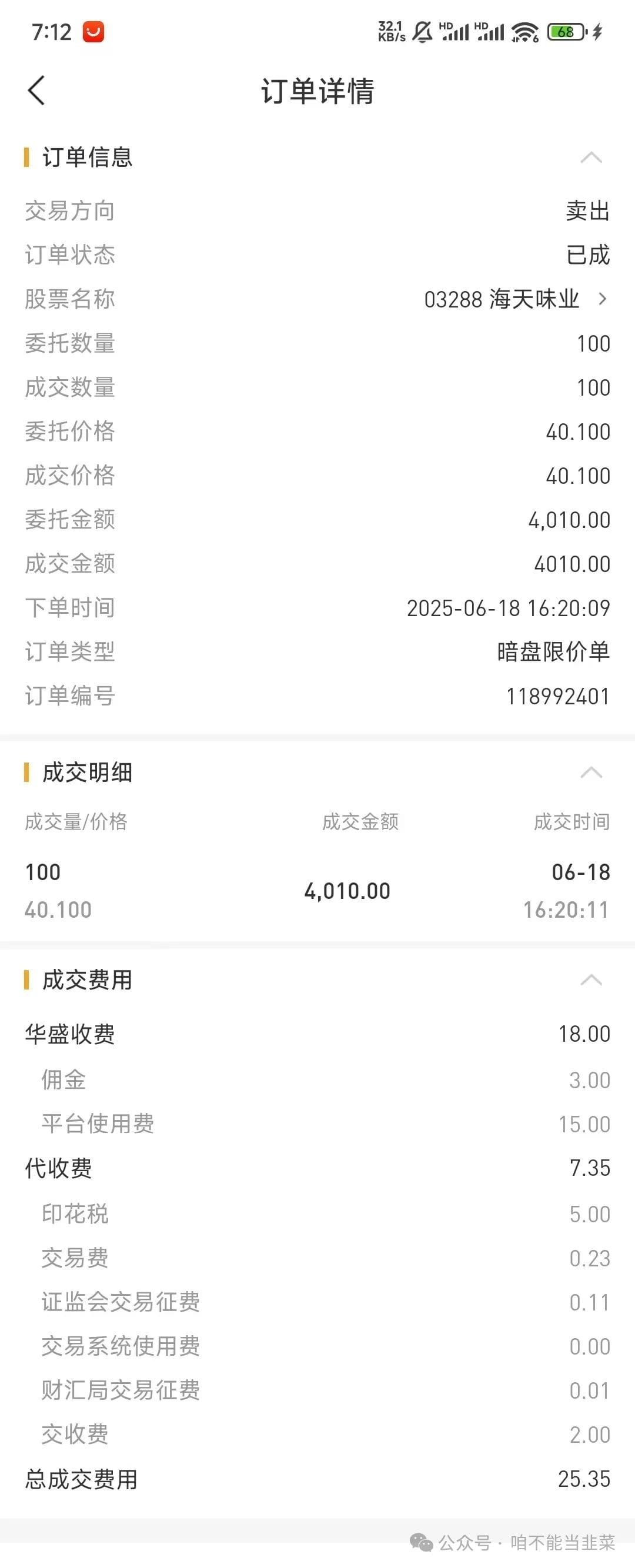 海天味业打新盈利8.67% 发表于 2025-06-22 分类于 investment 阅读次数: 本文字数: 149 阅读时长 ≈ 1 分钟 海天味业(6月19日)暗盘交易,开盘上涨12.4%,收盘涨幅3.86%。上市当天盘中一度破发,目前累计跌幅1.52% 这是我中的第一支港股,中签了100股。暗盘交易当天,我发觉走势不妙,加上港股大盘很弱,果断在开盘5分钟后以40.1价格卖出,扣除认购和成交费用,盈利 318 HKD (+8.67%) 打赏 微信支付 支付宝 本文作者: PC 本文链接: https://pcj600.github.io/2025/0622213820.html 版权声明: 所有文章都欢迎转载, 注明出处即可.