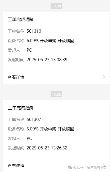 由于工作原因无法实时盯盘,我在4月份失业期间编写了一个溢价通知程序,当基金出现溢价时自动通知到手机,省去了我盯盘的麻烦,目前运行还算稳定。