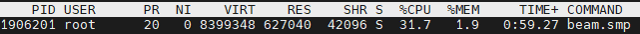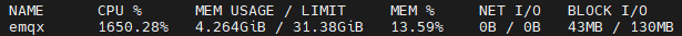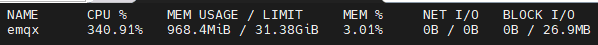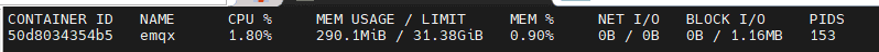 查看 EMQX 空载 CPU和内存使用率:1.8%、290M