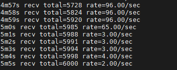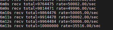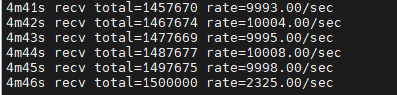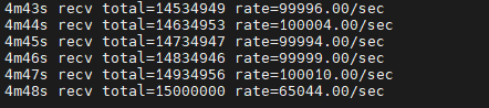 发布速率:9998 msg/s, 订阅速率:9998 msg/s
