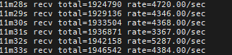 发布速率:4384 msg/s, 订阅速率:4384 msg/s
