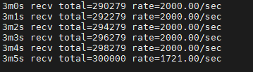 发布速率:1967 msg/s, 订阅速率:1967 msg/s